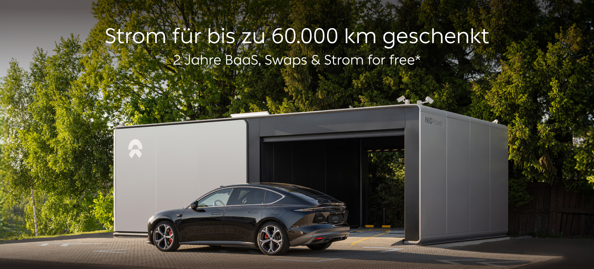 - Bestellen Sie bis zum 30.06.2025 einen NIO ET5 oder NIO ET7 und erhalten Sie Battery-as-a-Service (BaaS) for free. Im Aktionszeitraum sind die Batteriewechsel samt Energie an unseren Power Swap Stations ebenfalls kostenlos.*