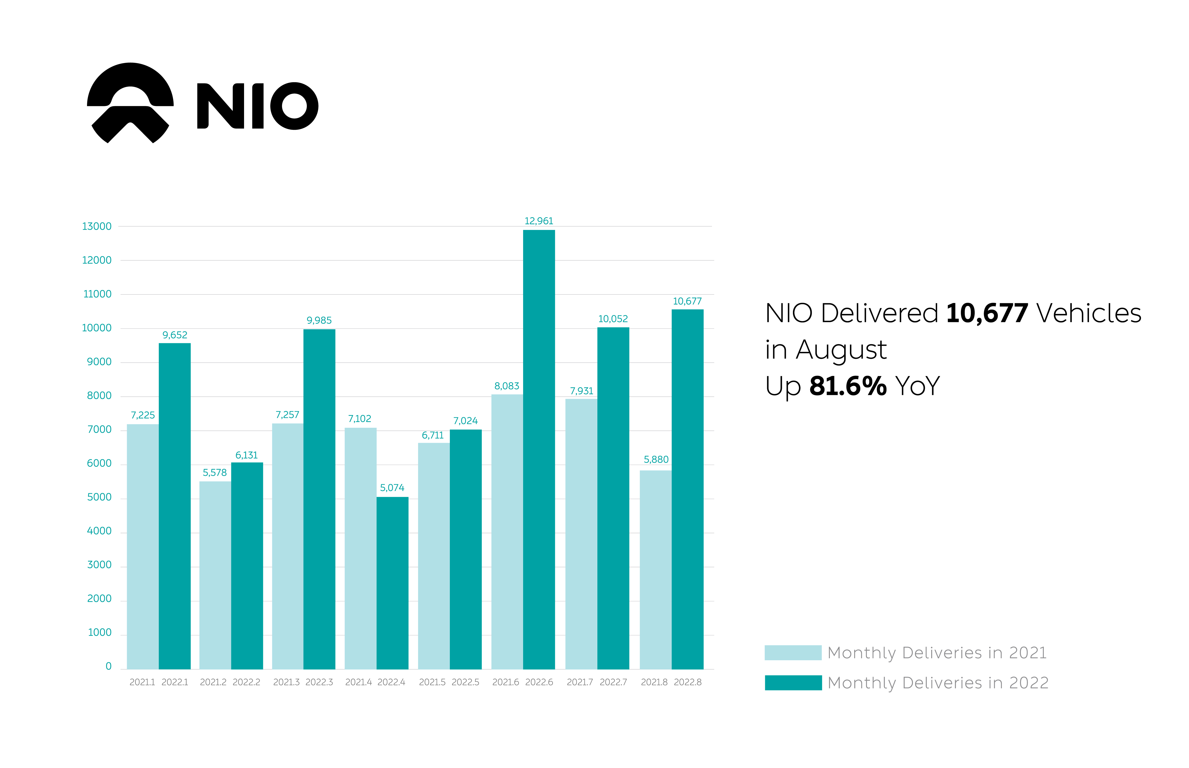 • NIO delivered 10,677 vehicles in August 2022, increasing by 81.6% year-over-year