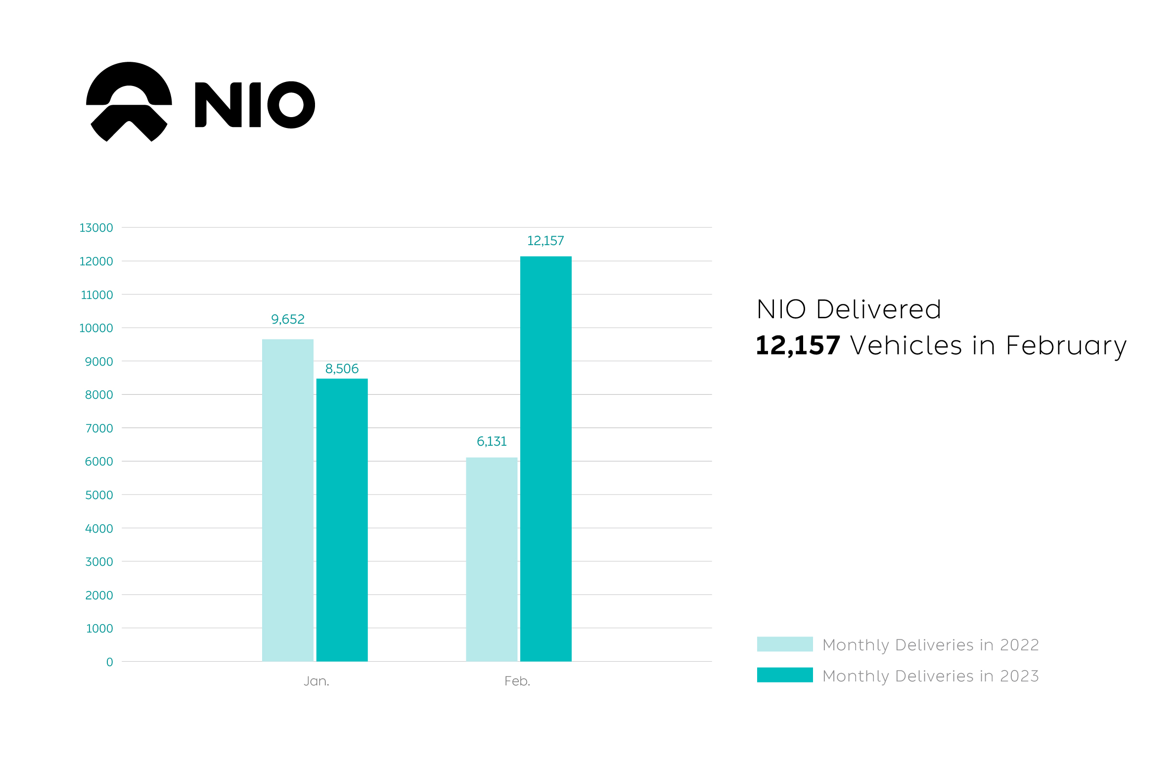 On March 1, NIO announced that it delivered 12,157 vehicles in February, including 5,037 premium smart electric SUVs and 7,120 premium smart electric sedans, leading to 42.9% month-on-month and 98.3% year-on-year growth. From January to February 2023, NIO delivered a total of 20,663 vehicles, a year-on-year increase of 30.9%. NIO has delivered a total of 310,219 vehicles.