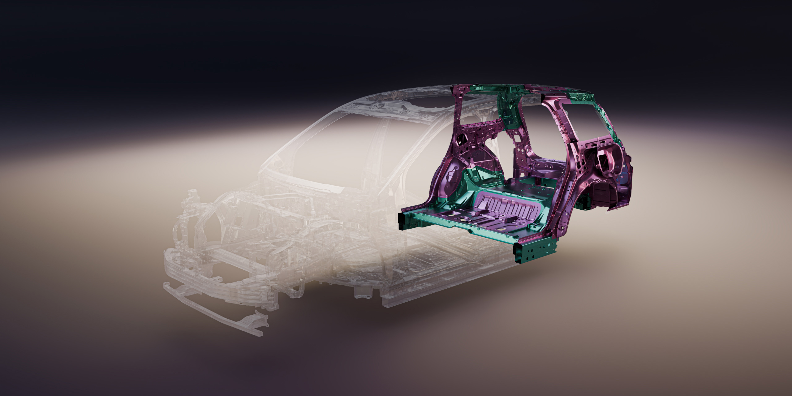 The rear employs a multi-layered buffer structure combined with ultra-high-strength mega casting, creating an exceptionally robust rear structure with enhanced protection.