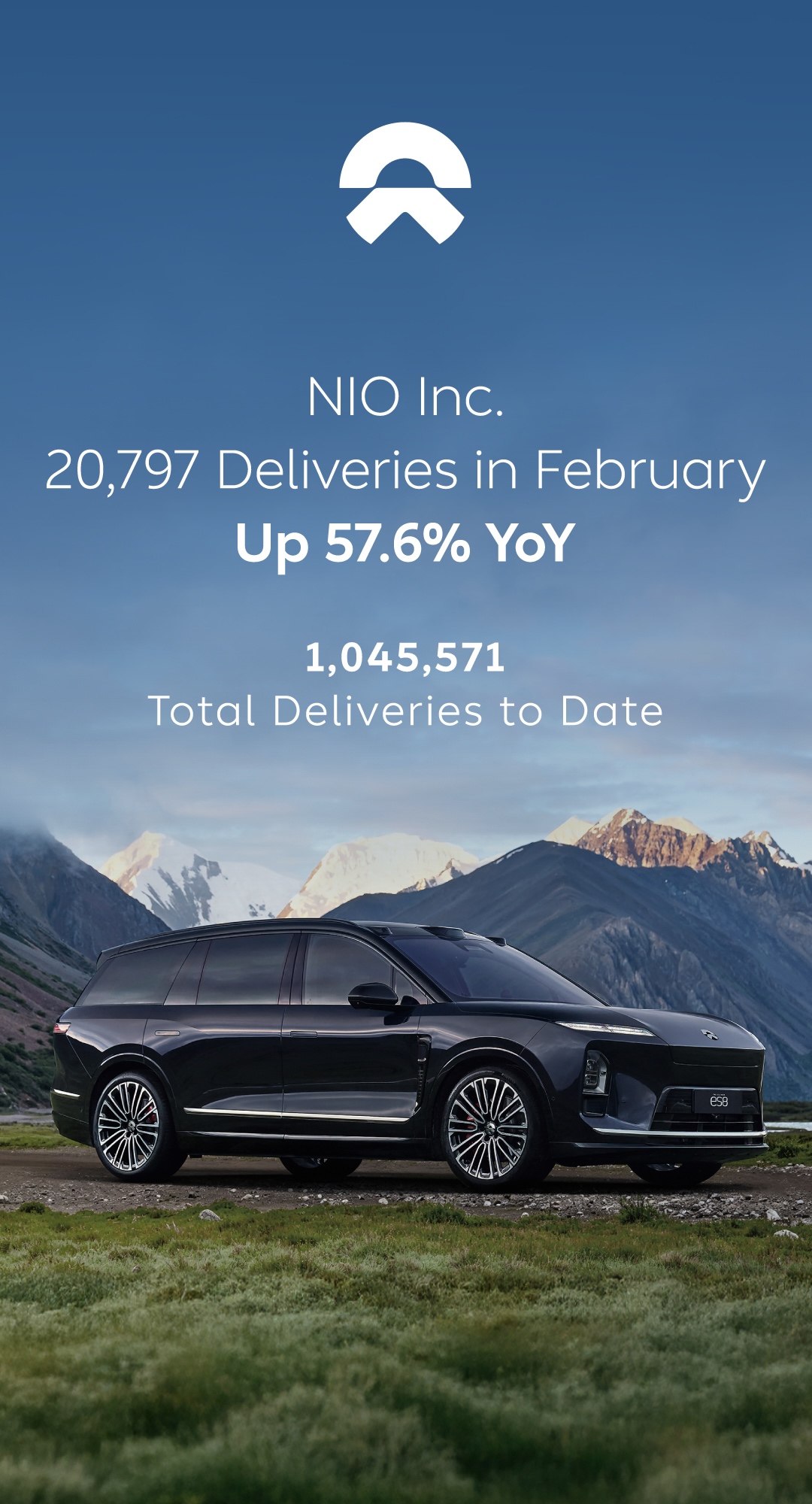 NIO delivered 20,797 vehicles in February 2026, representing an increase of 57.6% year-over-year. As of now, NIO Inc. has delivered a cumulative total of 1,045,571 vehicles.