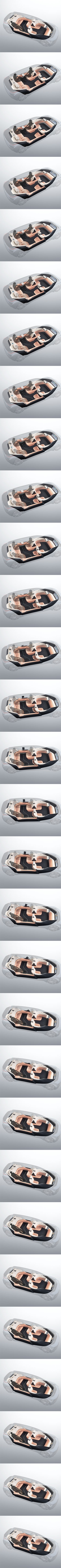 The surface across the side of the vehicle can transform from opaque to transparent in an instant, allowing occupants to shield away from the sun or see all the way to the horizon.